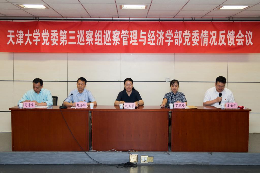 星期五按照天津大学党委统一部署,2019年6月26日,学校党委巡察组分别向材料学院党委、文学院党委、经管学部党委反馈了巡察情况。校党委副书记、纪委书记、巡察工作领导小组副组长孙广平,校党委副书记、巡察工作领导小组副组长赵美蓉分别出席反馈会议,传达学校党委对巡察整改工作的要求并讲话,校党委副书记雷鸣作为联系文学院的领导出席了向文学院党政主要负责人反馈环节并讲话。第一巡察组组长马春有、第二巡察组组长刘震、第三巡察组组长赵金铎分别反馈了巡察意见,被巡察单位党组织书记作了表态发言。反馈会前,向被巡察单位党政主要负责人进行了反馈。